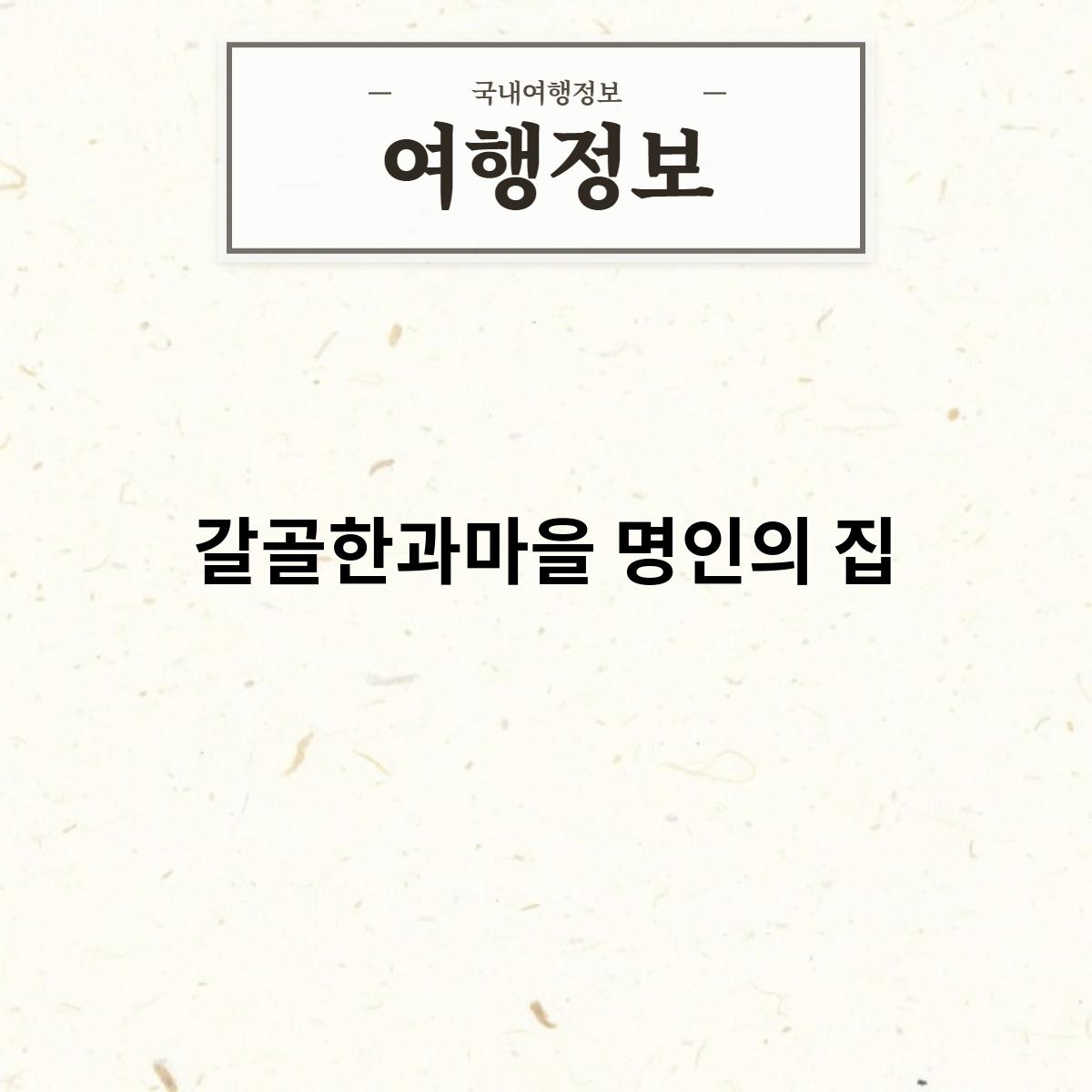 갈골한과마을 명인의 집은 150년 이상의 전통을 가진 한과 명인의 집입니다. 갈골한과는 조선시대부터 전해 내려오는 전통 한과로, 고소하고 담백한 맛이 특징입니다. 갈골한과마을 명인의 집은 이러한 갈골한과를 직접 제조하고 판매하는 곳입니다.