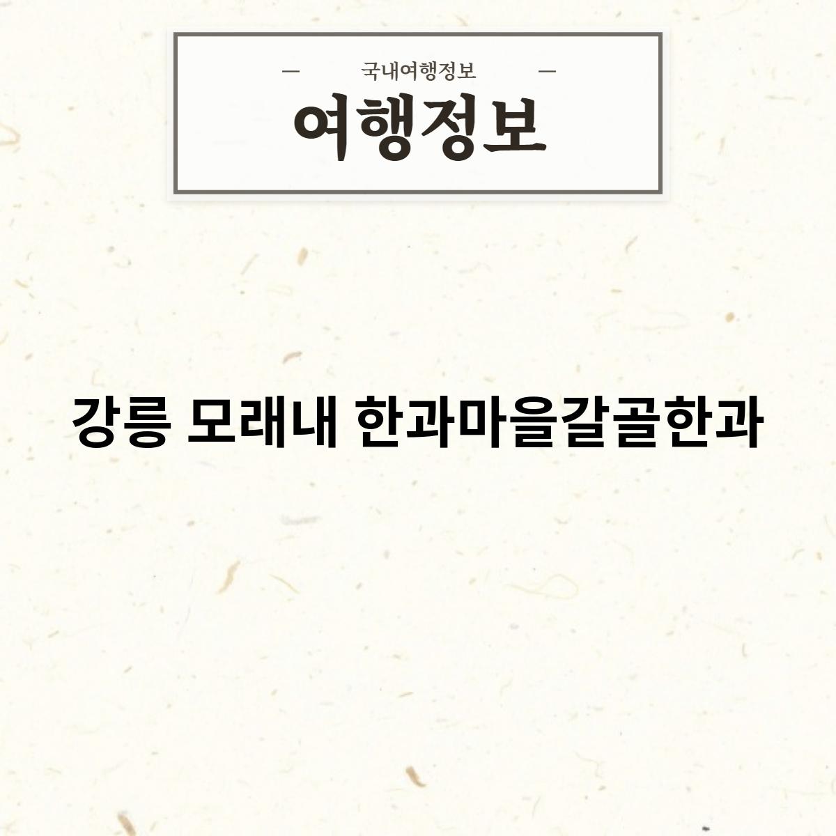 강릉 모래내 한과마을 갈골한과는 강원도 강릉시 사천면 모래내리에 위치한 전통 한과 전문점입니다. 1972년부터 약 50년 동안 한과를 만들어온 전통 한과 명가로, 다양한 종류의 한과를 판매하고 있습니다.