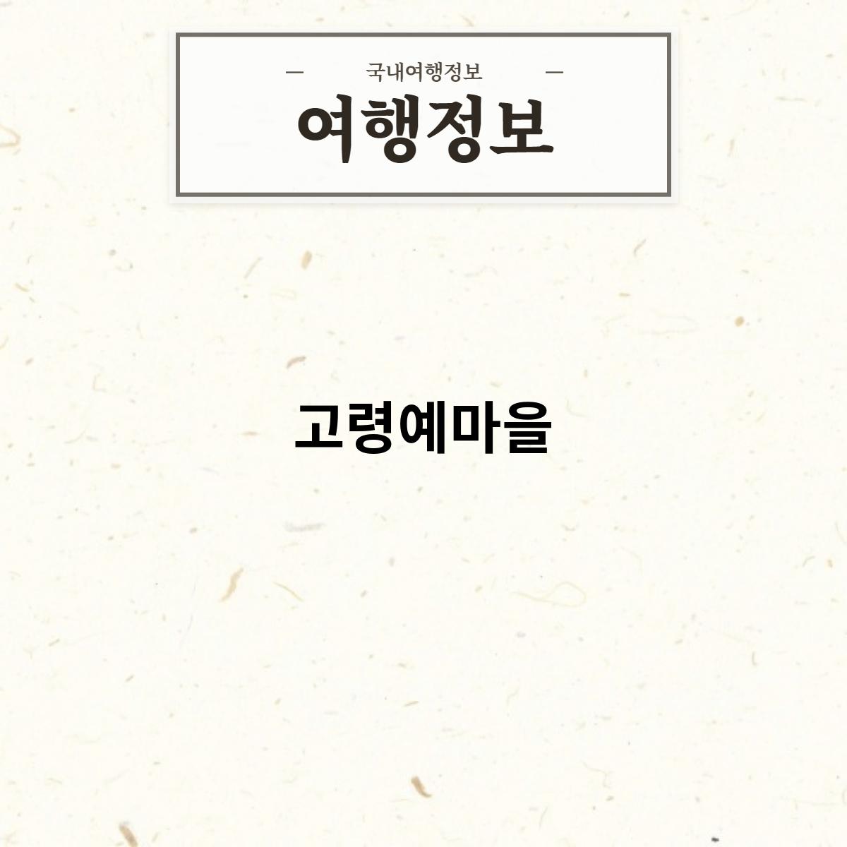 전통문화 체험: 고령 예마을에서는 매년 고령 예마을 민속문화축제 등 다양한 전통문화 행사가 개최됩니다. 고령 예마을의 전통문화를 체험하세요.