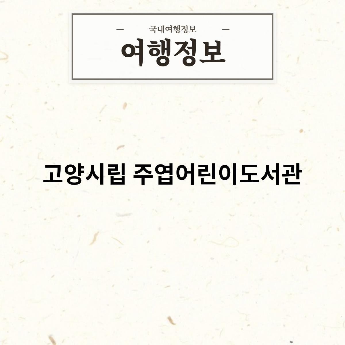 고양시립 주엽어린이도서관은 어린이들이 책과 친해지고, 다양한 문화 활동을 즐길 수 있는 공간입니다. 다양한 도서와 프로그램이 마련되어 있으니, 어린이와 함께 방문해보시기 바랍니다.