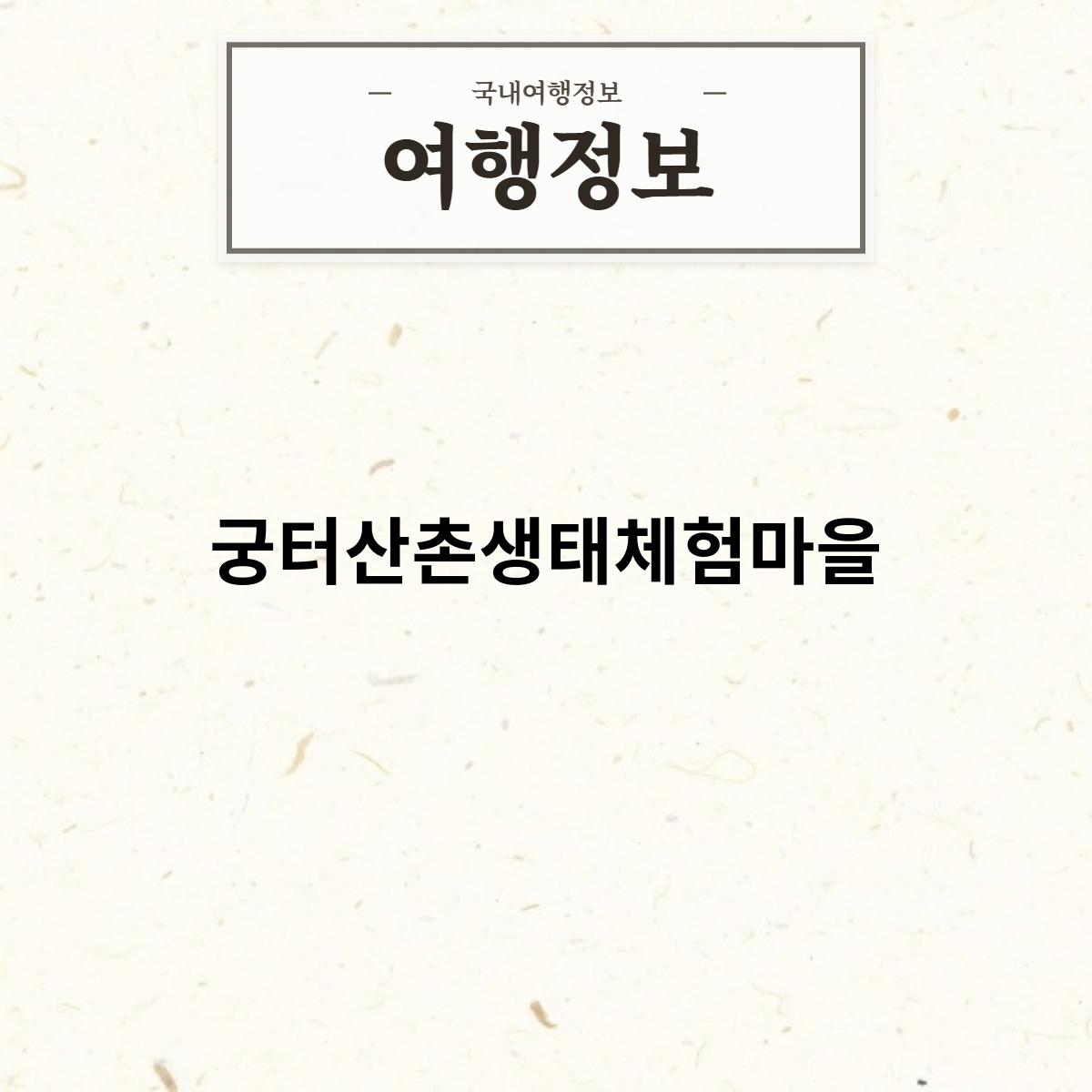 궁터산촌생태체험마을은 자연과 함께하는 휴식과 체험을 즐길 수 있는 곳입니다. 다양한 산촌체험 프로그램을 통해 자연의 소중함을 느낄 수 있는 곳으로, 가족 단위 관광객에게 적합한 곳입니다.