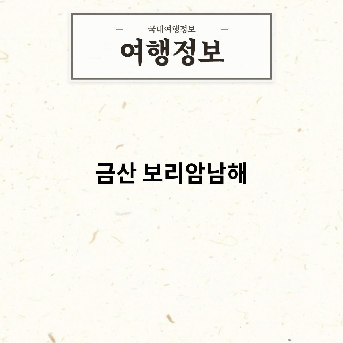 금산 보리암은 경상남도 남해군 금산면 대흥리에 위치한 사찰입니다. 남해의 관문인 금산면 대흥리 금산에 자리 잡고 있으며, 남해의 대표적인 관광지 중 하나입니다.