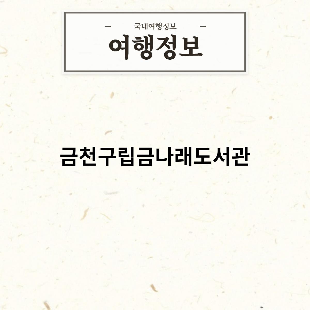 금천구립금나래도서관은 서울특별시 금천구 시흥대로 400(가산동)에 위치한 공공 도서관입니다. 2013년 10월 1일에 개관하였으며, 종합자료실, 어린이자료실, 디지털자료실, 평생학습실, 문화교실, 다목적실 등 다양한 시설을 갖추고 있습니다.