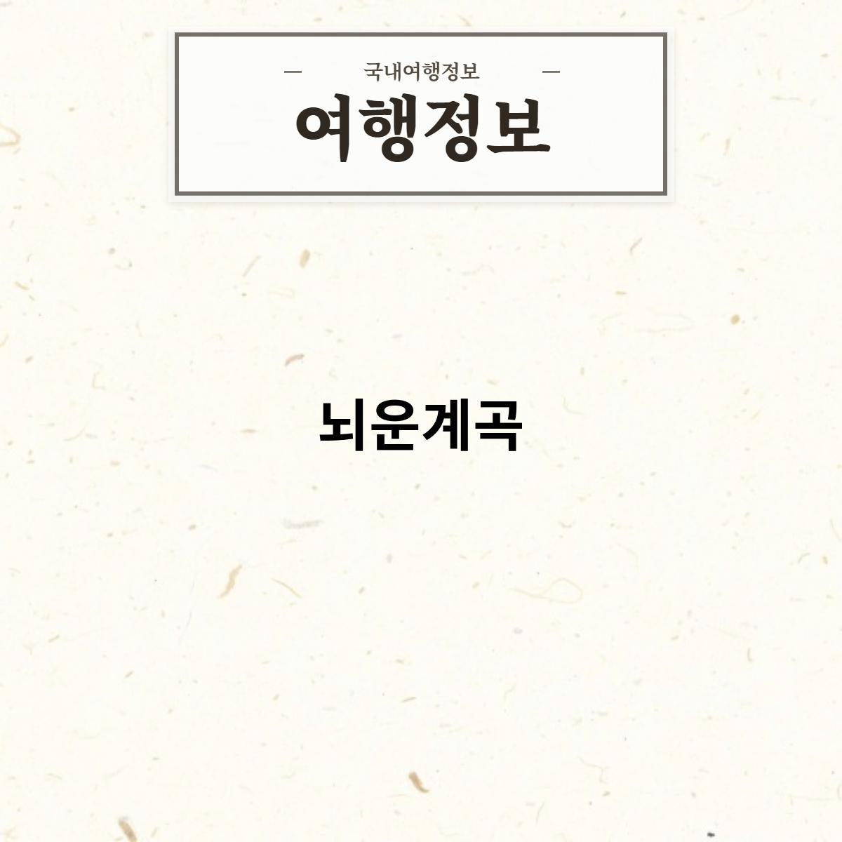 아름다운 자연경관: 뇌운계곡은 울창한 숲과 맑은 계곡물이 어우러져, 아름다운 자연경관을 자랑합니다.