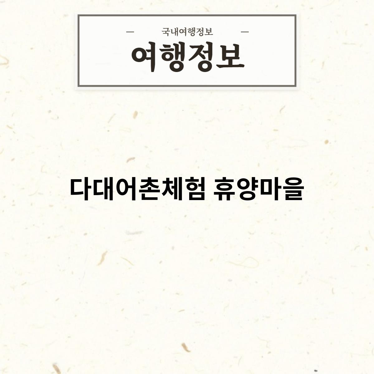 다대어촌체험 휴양마을은 부산광역시 사하구 다대동에 위치한 어촌체험마을입니다. 2006년에 개관하였으며, 다양한 어촌 체험 프로그램을 통해 도시민들에게 바다를 체험할 수 있는 기회를 제공하고 있습니다.