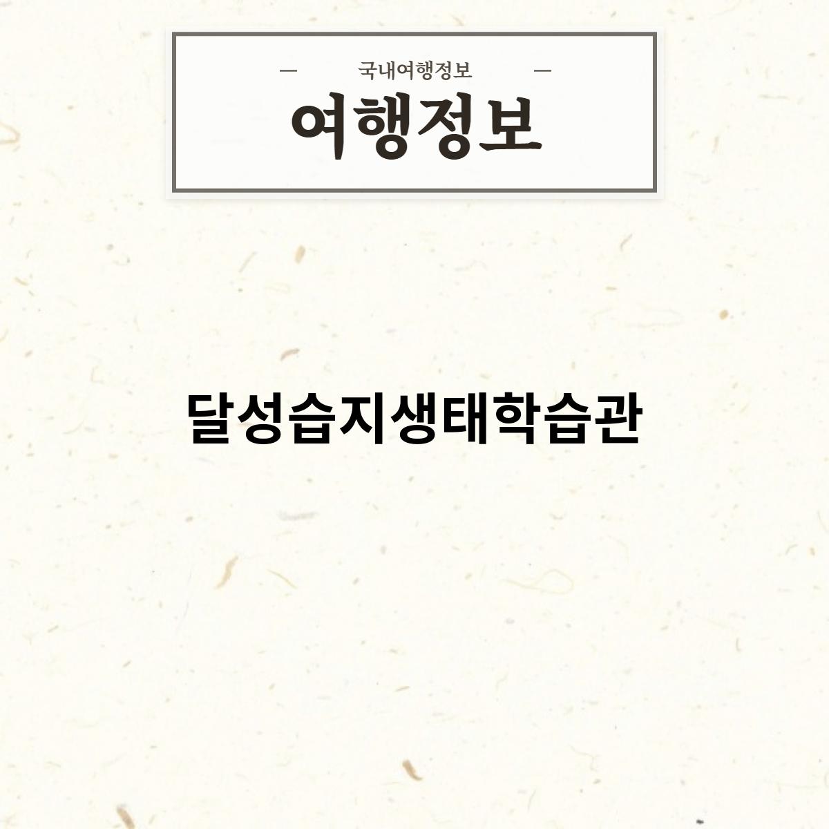달성습지생태학습관은 대구광역시 달성군 다사읍에 위치한 생태학습관입니다. 2010년에 개관하였으며, 총면적은 1,200㎡입니다.