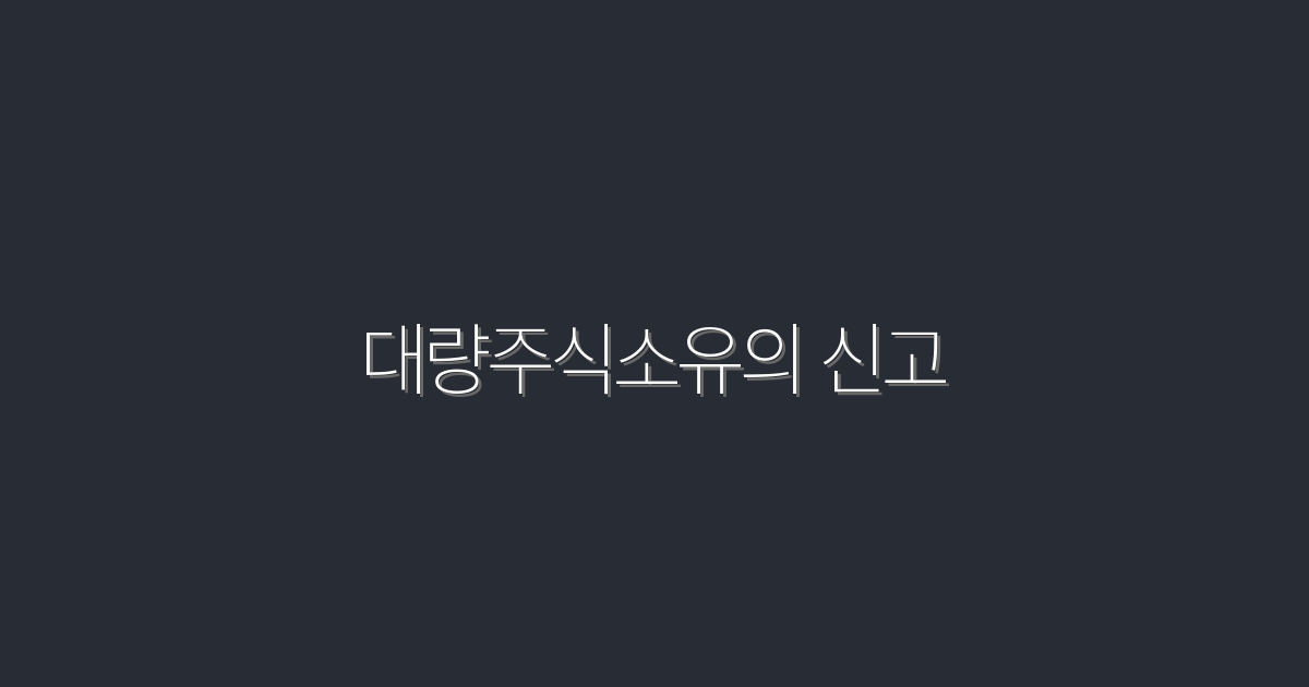 대량주식소유의 신고 5가지 핵심 팁 2026년 최신
