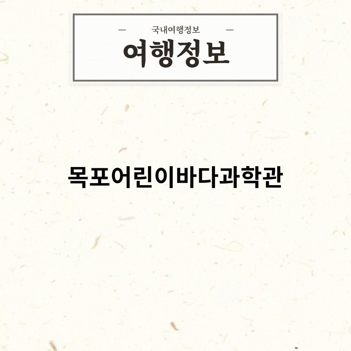 • 어린이들을 위한 과학관 : 목포어린이바다과학관은 어린이들을 위한 과학관으로, 어린이들이 재미있게 과학을 배울 수 있도록 다양한 전시와 체험 프로그램을 운영하고 있습니다.