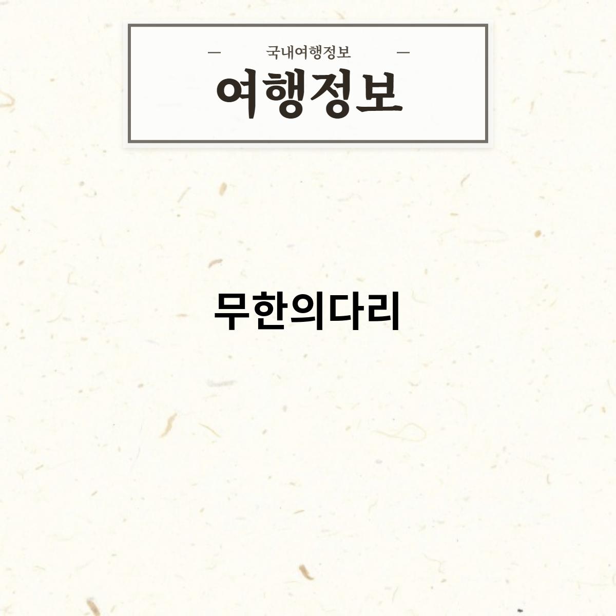무한의다리는 강원도 양양군에 위치한 전망대입니다. 바다 위에 떠 있는 듯한 느낌을 주는 전망대로, 인생샷 명소로도 유명합니다. 무한의다리를 방문하여 바다를 감상하고, 인생샷을 남기세요.