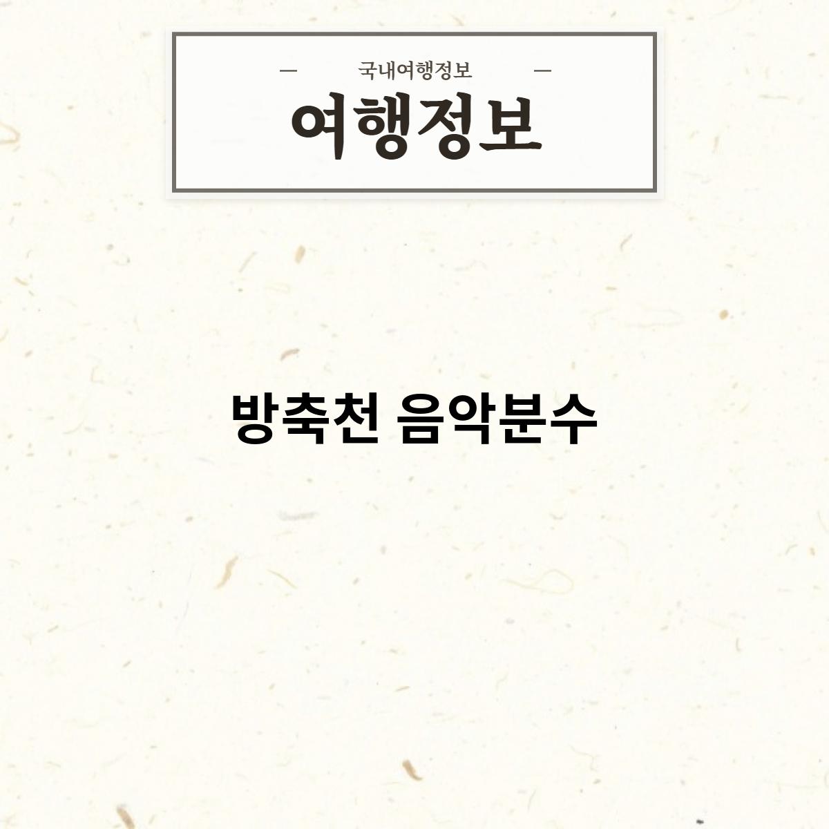 방축천 음악분수는 매일 저녁 8시 30분부터 1시간 동안 공연을 진행합니다. 다양한 음악과 조명이 어우러진 공연을 감상하세요.