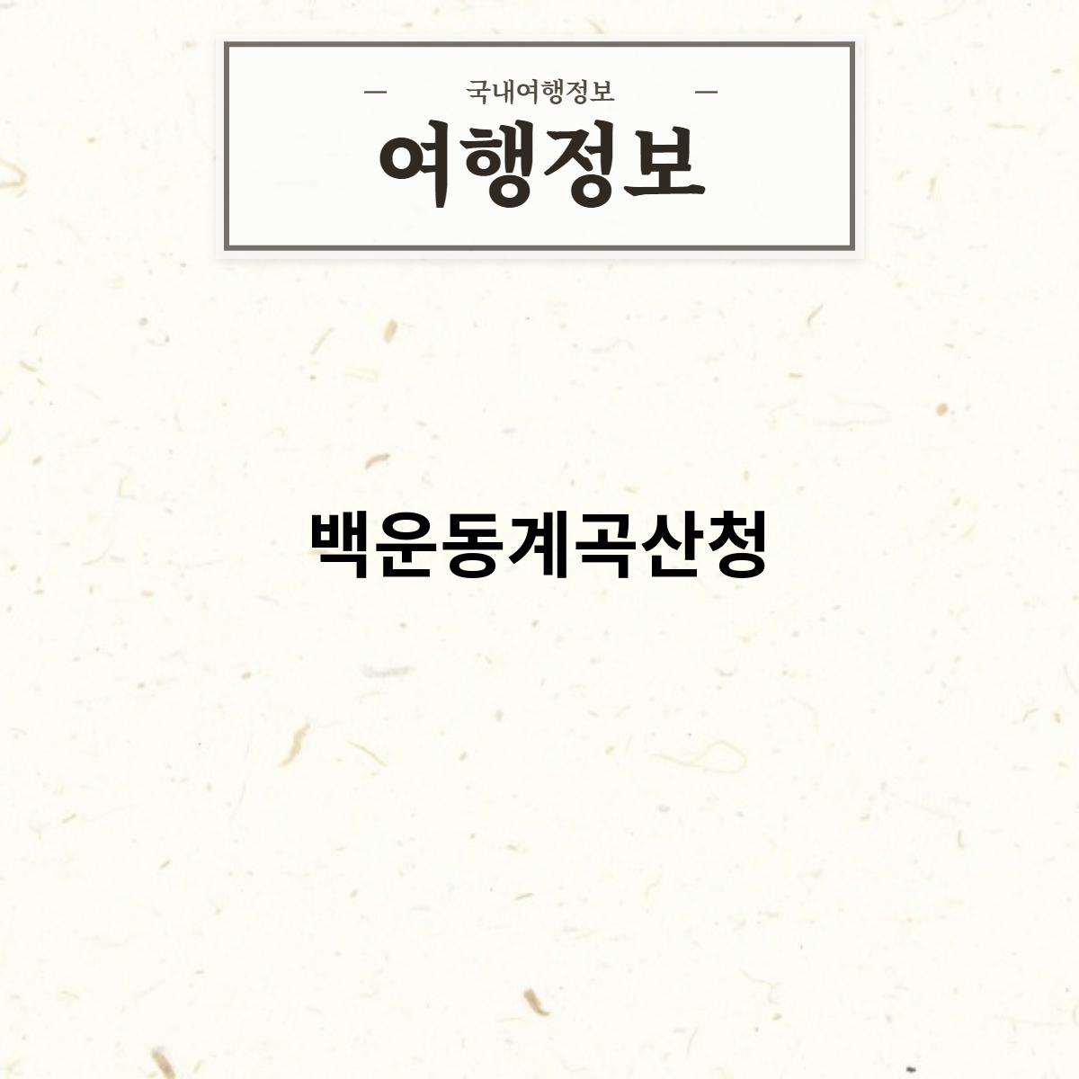 백운동계곡은 울창한 숲과 맑은 계곡이 어우러진 자연 명소로, 여름철에는 물놀이를 즐기고, 가을철에는 단풍을 감상하기에 좋습니다.
