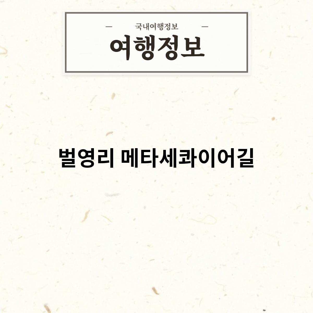 벌영리 메타세쿼이어길은 1980년대 식재된 메타세쿼이아가 쭉쭉 뻗어 있어, 장관을 이루는 곳입니다. 길이는 약 2km이며, 메타세쿼이아 숲길을 따라 산책을 즐길 수 있습니다.