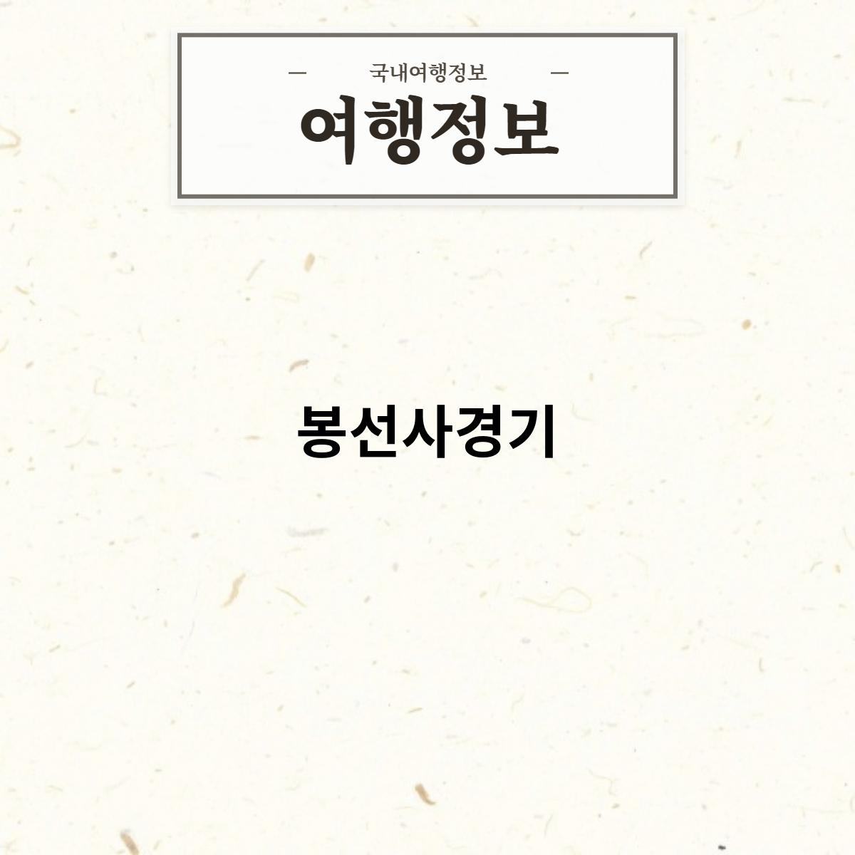 봉선사경기의정보를알아보자