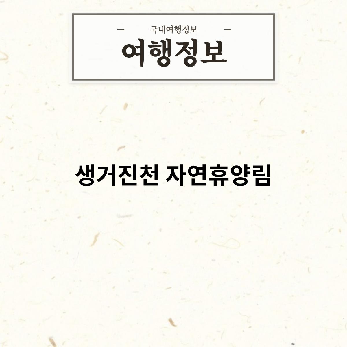 생거진천 자연휴양림은 충청북도 진천군에 위치한 자연휴양림입니다. 울창한 숲과 아름다운 호수가 어우러진 곳으로, 다양한 체험 프로그램을 즐길 수 있는 곳입니다. 생거진천 자연휴양림을 방문하여 자연을 만끽하고, 휴식을 취하시기 바랍니다.
