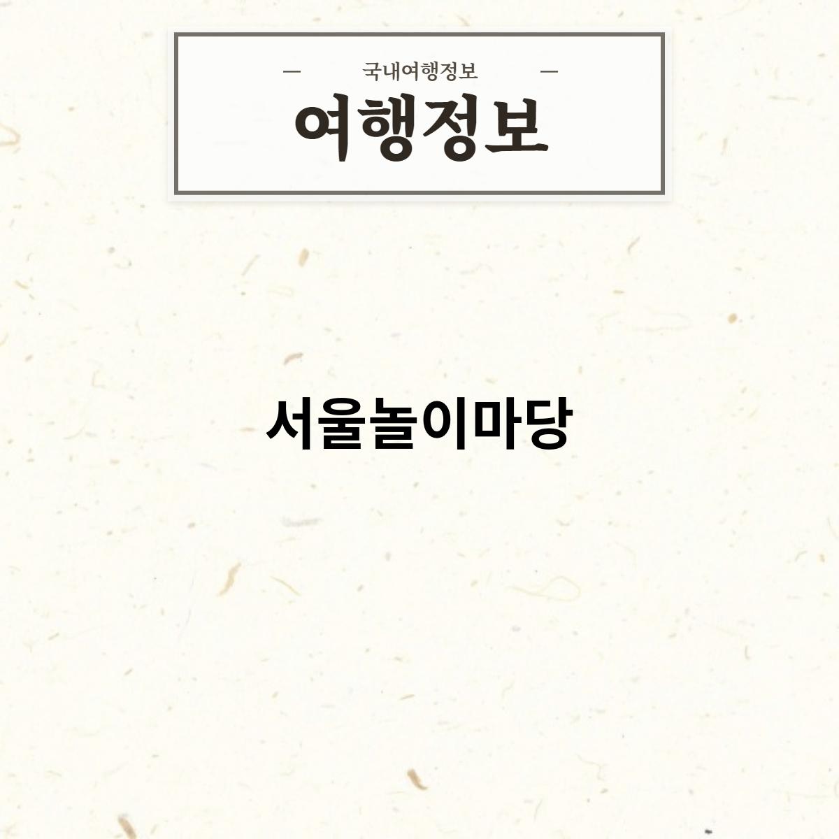 관광 정보: 서울놀이마당을 방문하기 위한 정보