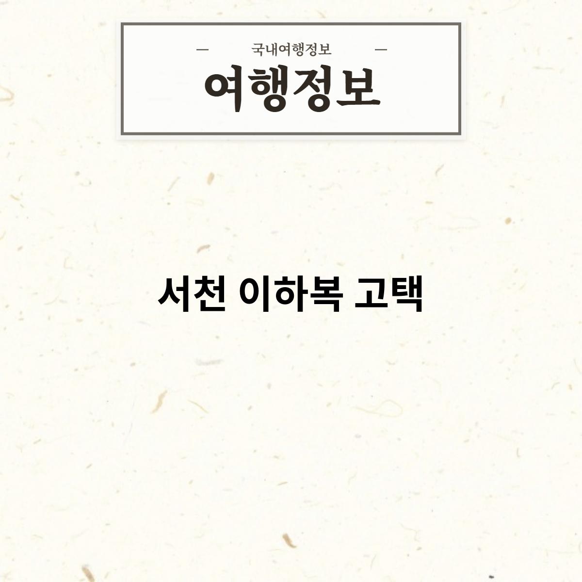 • 조선 후기의 전통 가옥 : 서천 이하복 고택은 조선 후기의 전통 가옥으로, 당시의 건축 양식을 잘 보여주고 있습니다.