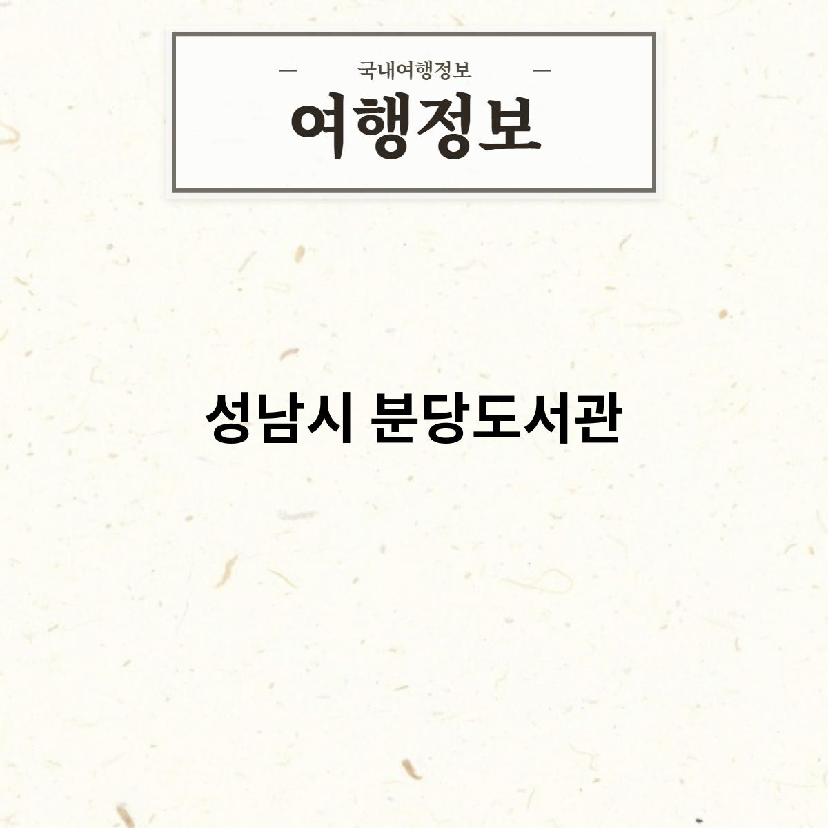 성남시 분당도서관은 1994년 개관한 도서관입니다. 분당구의 중심부에 위치하고 있으며, 분당구민들의 문화와 정보의 중심지로 자리 잡고 있습니다.