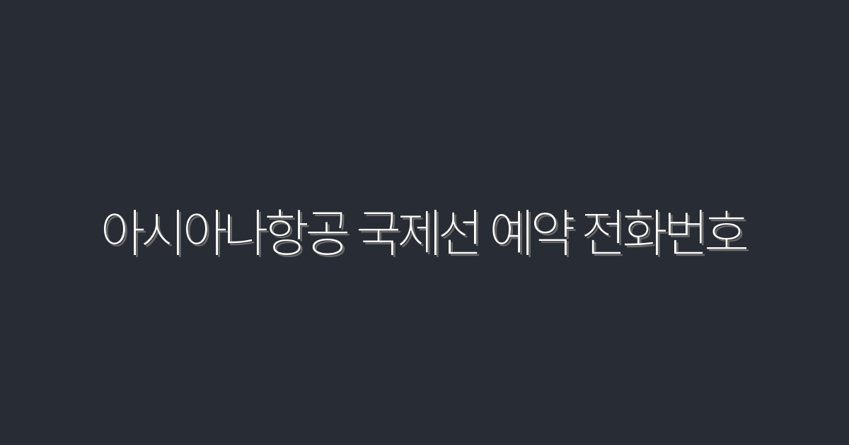 아시아나항공 국제선 예약 전화번호: 2026년 최신 정보로 간편하게 확인하기!
