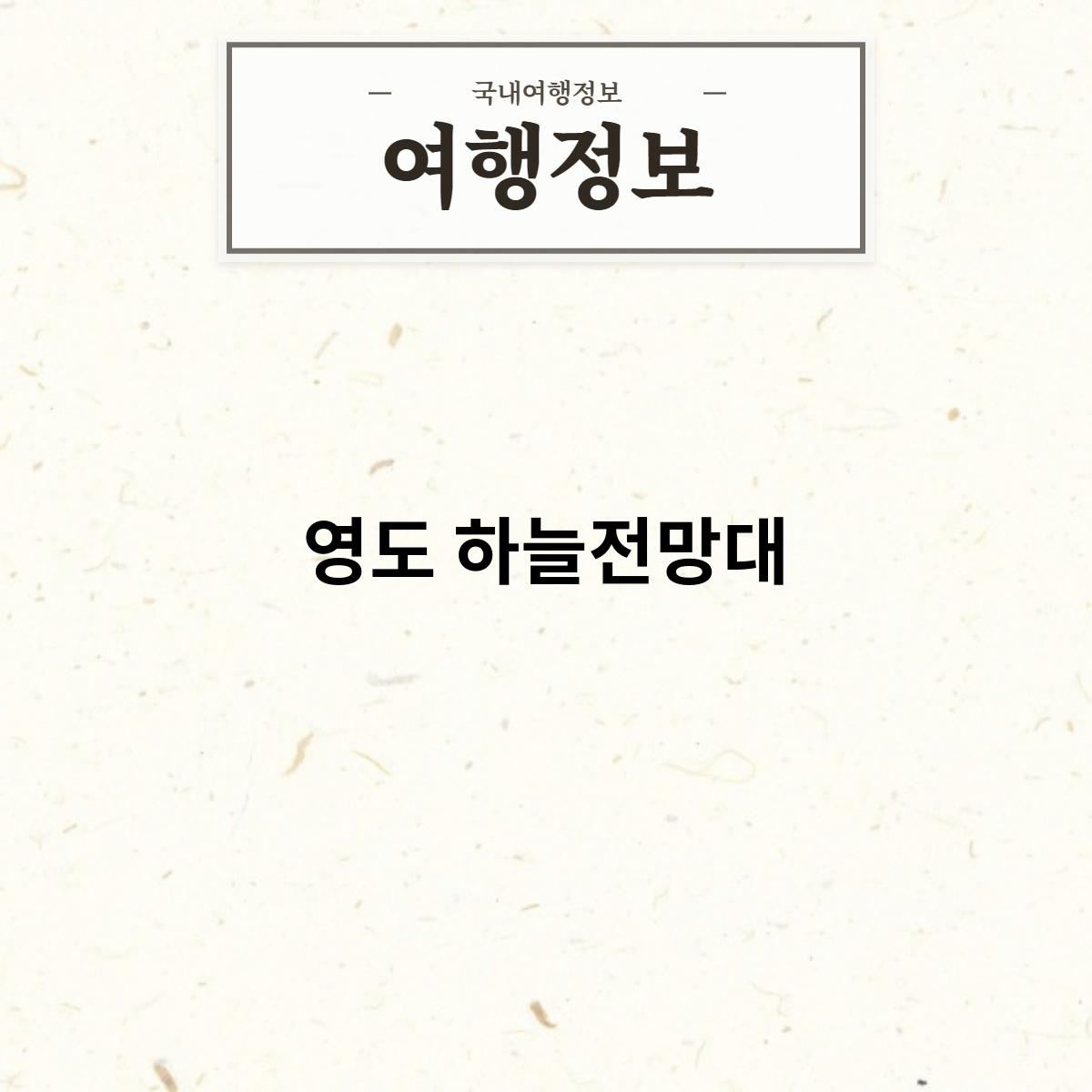 영도 하늘전망대는 부산광역시 동구에 위치한 전망대입니다. 부산항과 영도의 아름다운 풍경을 감상할 수 있는 전망대로, 스카이워크와 옥상정원을 통해 다양한 볼거리를 제공하는 곳입니다.