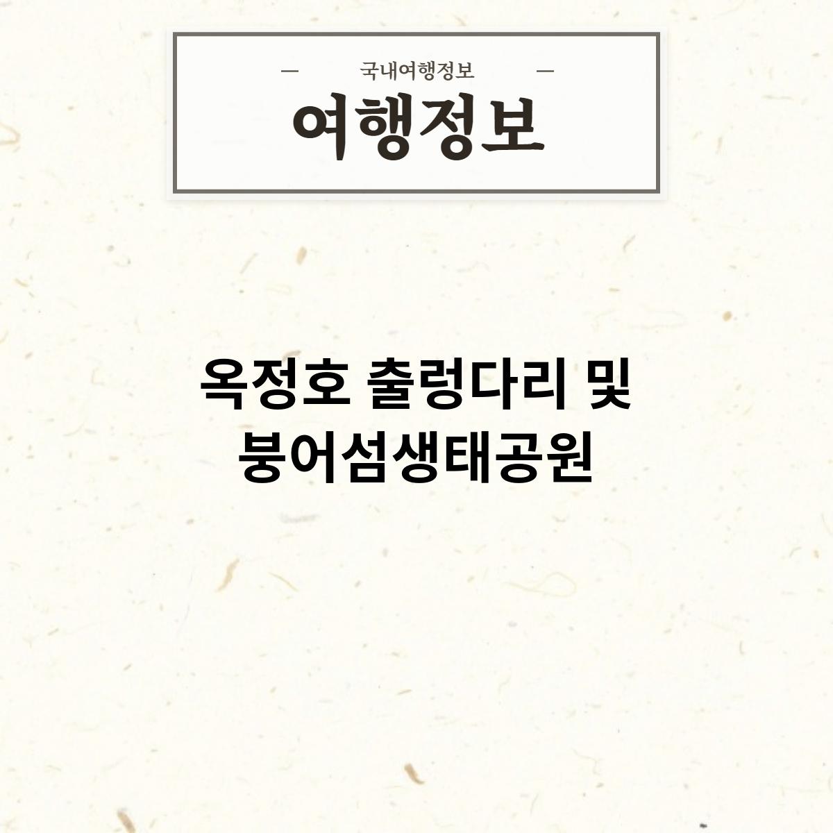 옥정호 출렁다리 및 붕어섬생태공원은 옥정호의 아름다운 풍경을 감상할 수 있는 곳입니다. 옥정호는 맑은 물과 주변의 산과 들로 둘러싸여 있어, 아름다운 풍경을 자랑합니다.