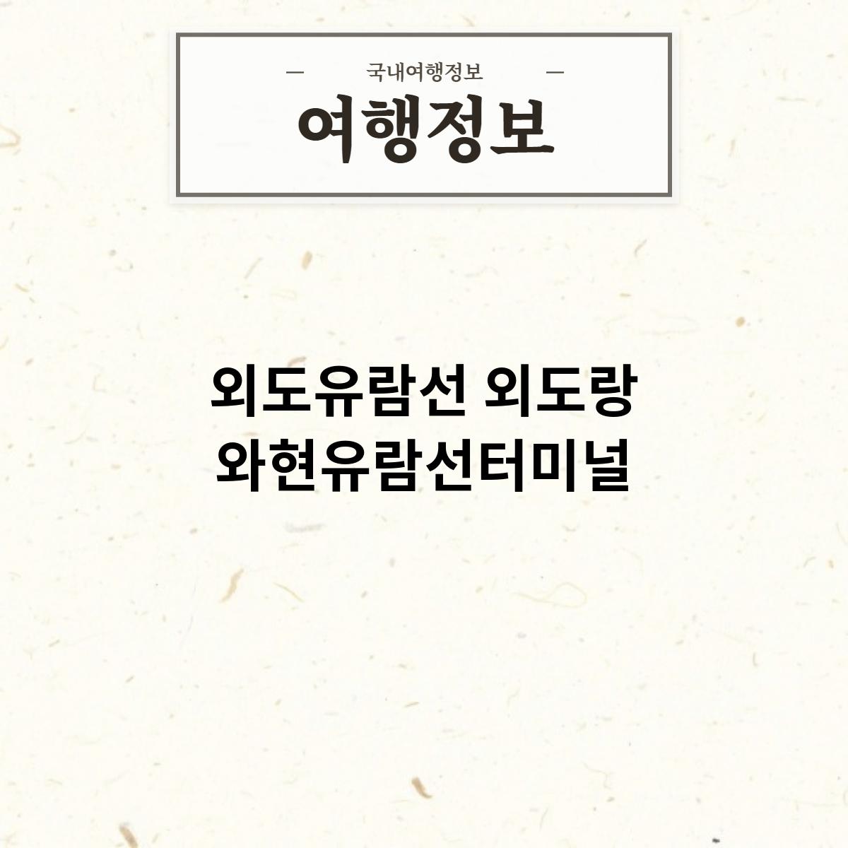 외도유람선 외도랑 와현유람선터미널은 경상남도 거제시 장목면 외도에 위치한 유람선 터미널입니다. 외도를 방문하기 위해서는 이 터미널에서 유람선을 이용해야 합니다.