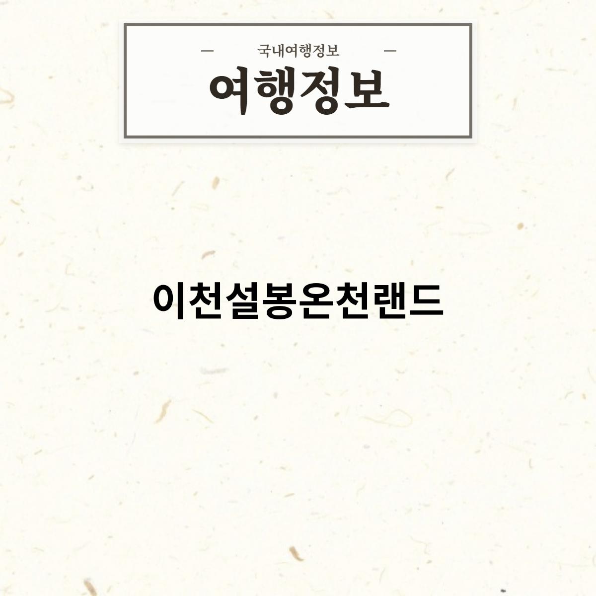 • 배경: 이천 설봉온천랜드는 1980년 4월에 개장하였으며, 1997년 12월에 증축하였습니다.