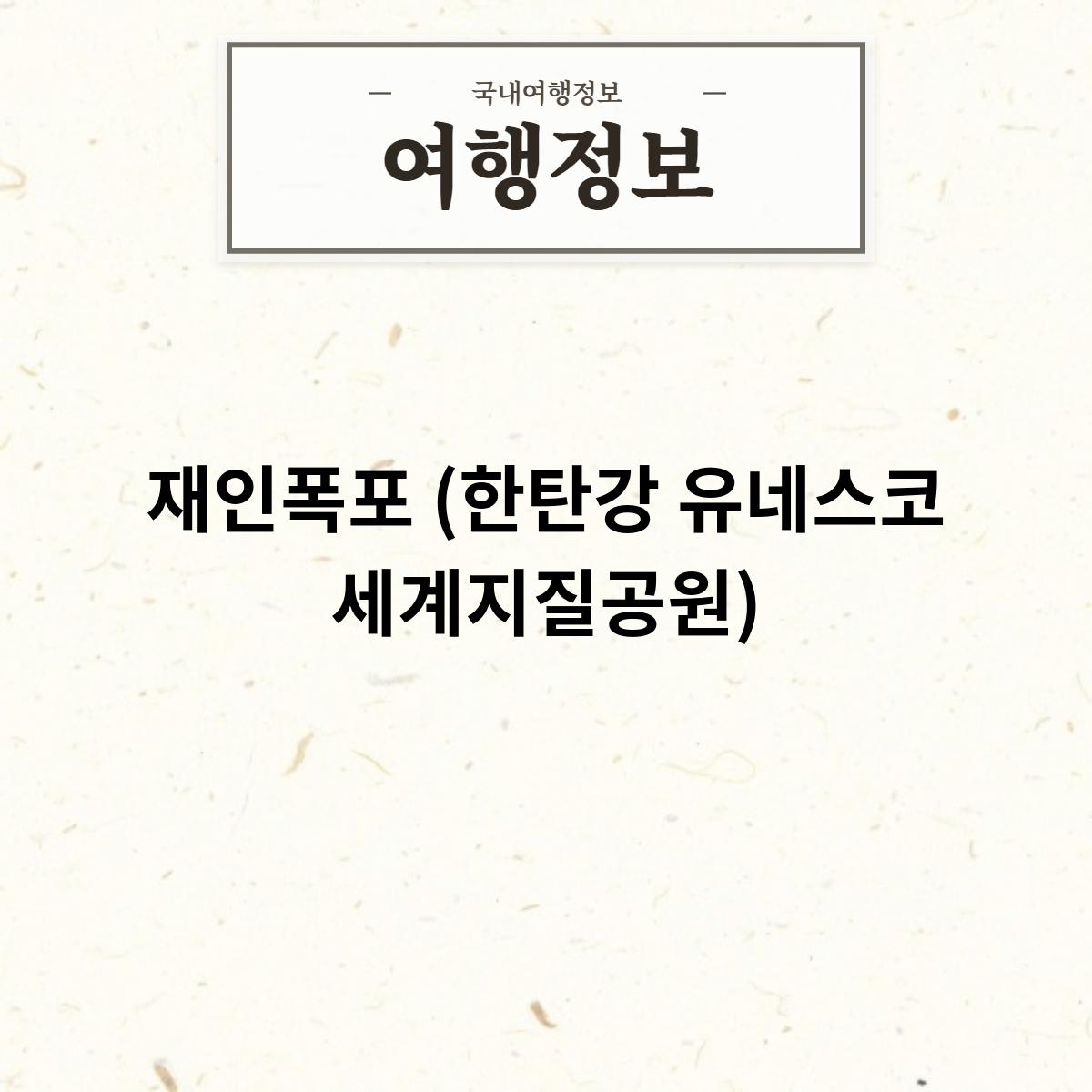 재인폭포는 한탄강 유네스코 세계지질공원에 속해 있는 폭포입니다. 현무암 주상절리 절벽을 따라 떨어지는 높이 18m, 너비 5m의 폭포입니다. 재인폭포는 여름철 피서지로도 인기가 많으며, 폭포 아래에서 폭포수를 맞으며 시원한 여름을 만끽할 수 있습니다. 또한, 폭포 위에서 폭포수를 감상하거나, 폭포 주변의 산책로를 따라 자연을 감상할 수도 있습니다.