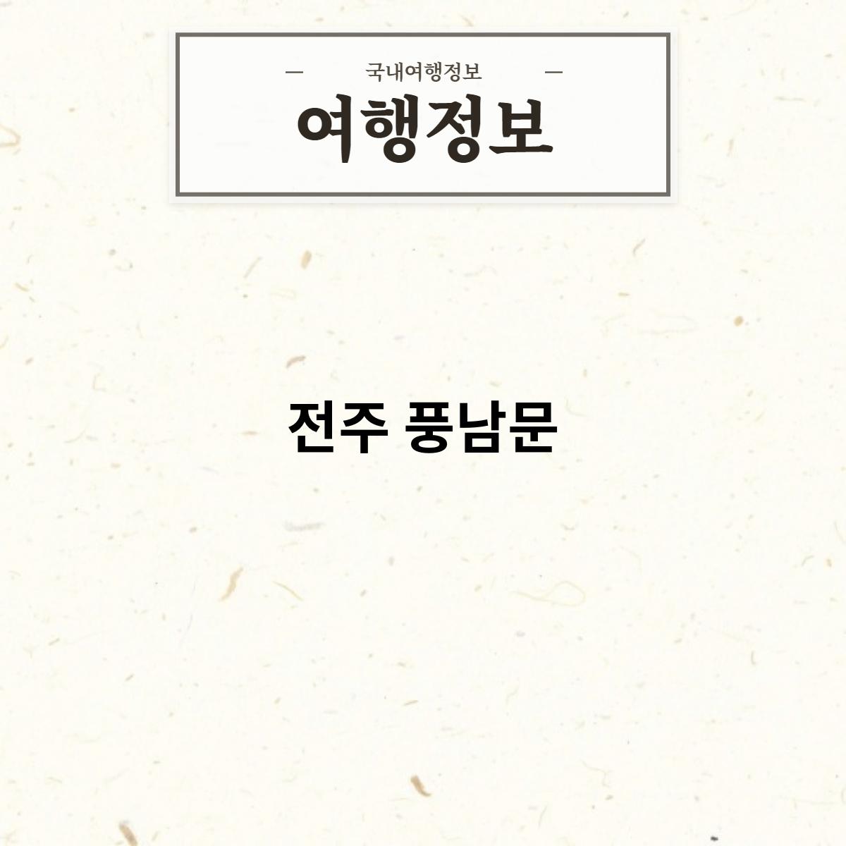 전주 풍남문은 전라북도 전주시 완산구 풍남동 1-1에 위치한 문입니다. 지하철 1호선 풍남역 1번 출구에서 도보로 약 5분 소요됩니다.