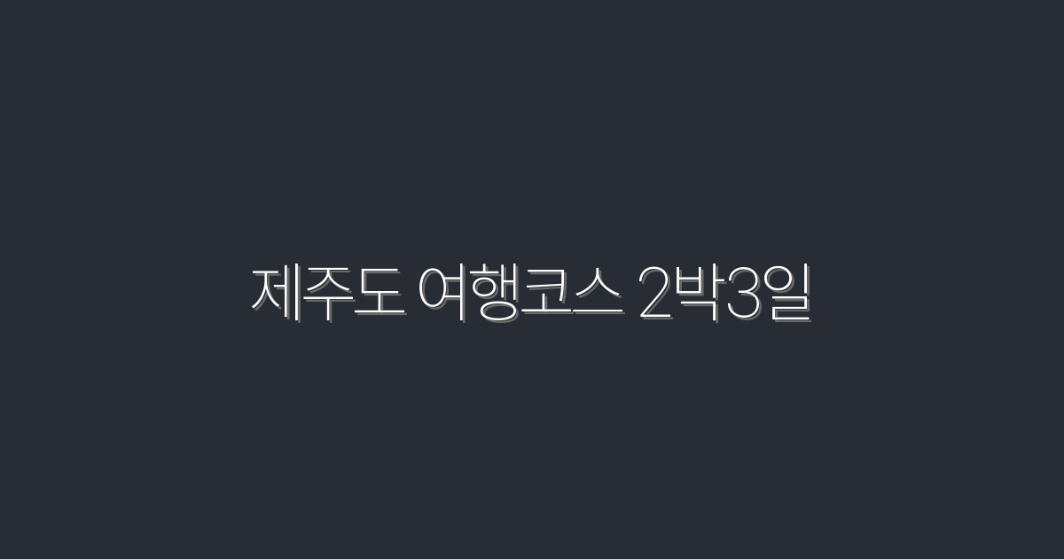 제주도 여행코스 2박3일 2026 최신 추천 10곳 완벽루트
