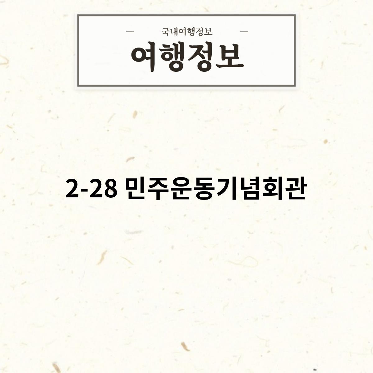 2-28 민주운동기념회관은 서울특별시 종로구에 위치한 기념관입니다. 4.19 민주혁명의 역사와 정신을 기리고, 민주주의의 가치를 계승하기 위해 설립되었습니다.