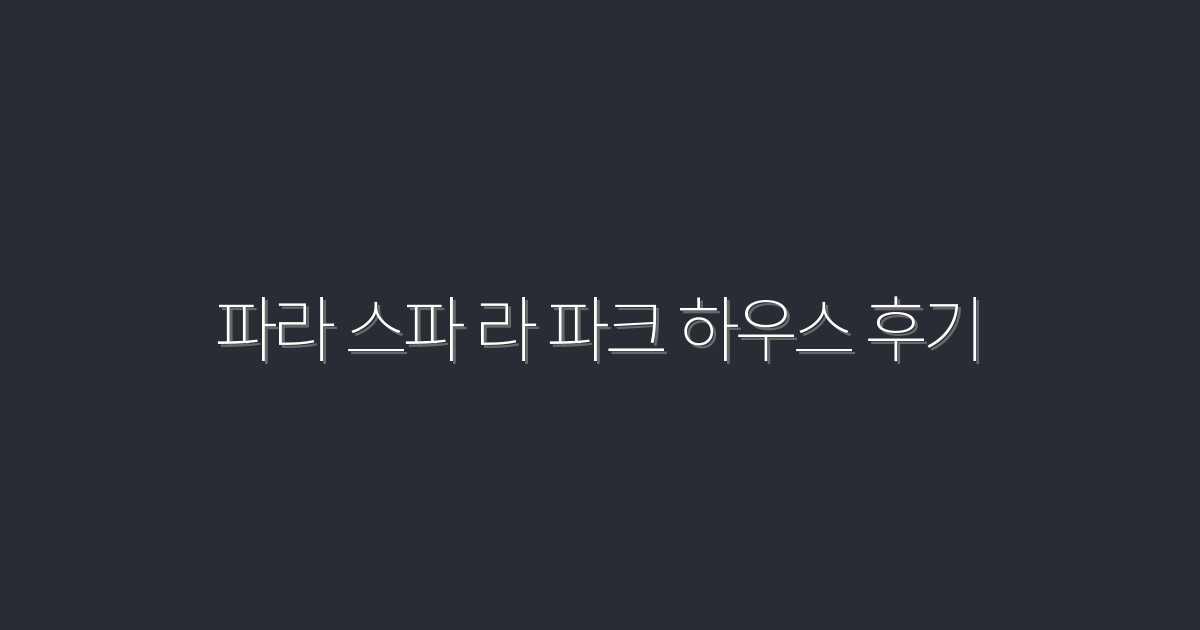 2026년 최신! 파라 스파 라 파크 하우스 후기 5가지 진짜 정보